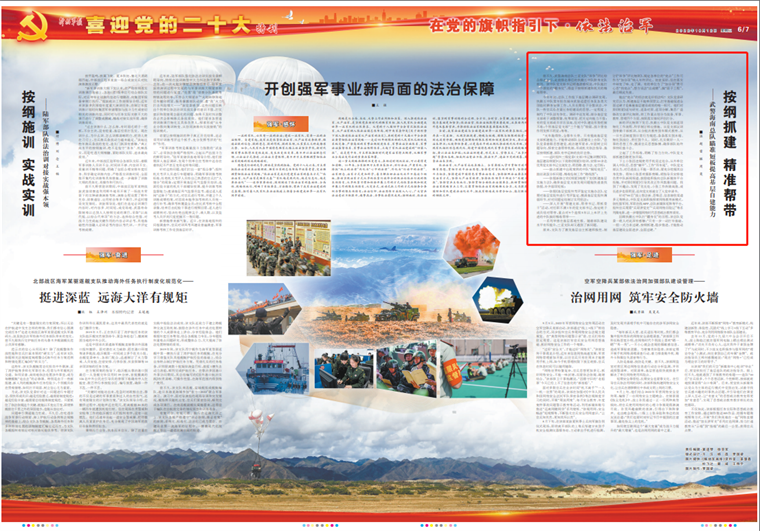 前不久,武警海南總隊三亞支隊“雙爭”評比綜合排名公示,此前排名靠后的執(zhí)勤五中隊躋身支隊前列。該中隊黨支部書記胡逸湛感嘆說,中隊能打一個漂亮的“翻身仗”,得益于按綱抓建和機關的精準幫帶。