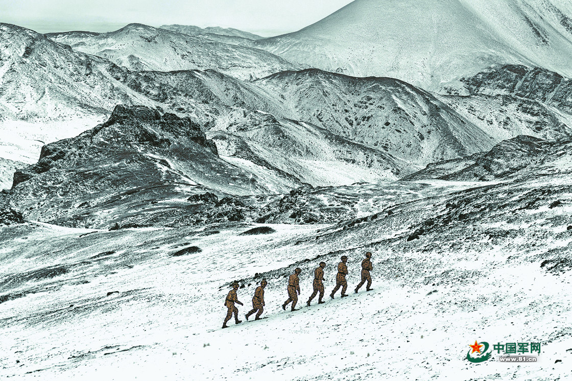 一陣寒風(fēng)吹過,官兵們對陣地周邊展開新一輪巡邏。身著新式作訓(xùn)服的官兵與皚皚雪山融為一體,儼然一幅壯美的水墨畫。