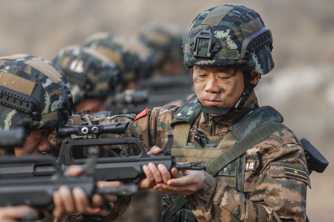 武警河北總隊(duì)某部大隊(duì)長(zhǎng)李闖組織特戰(zhàn)隊(duì)員進(jìn)行據(jù)槍訓(xùn)練(2021年3月4日攝)。新華社發(fā)(張丹 攝)