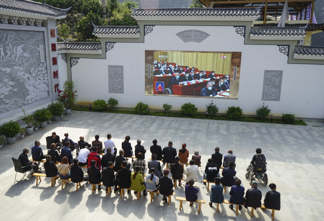 10月16日,重慶市巫山縣竹賢鄉(xiāng)下莊村村民收看中國(guó)共產(chǎn)黨第二十次全國(guó)代表大會(huì)開幕會(huì)。