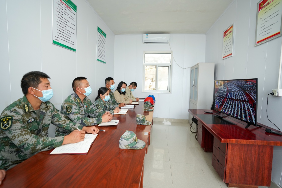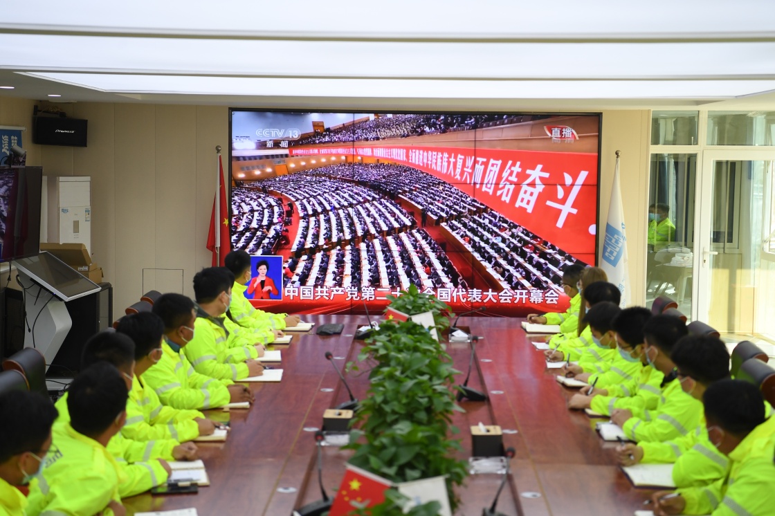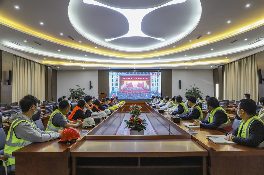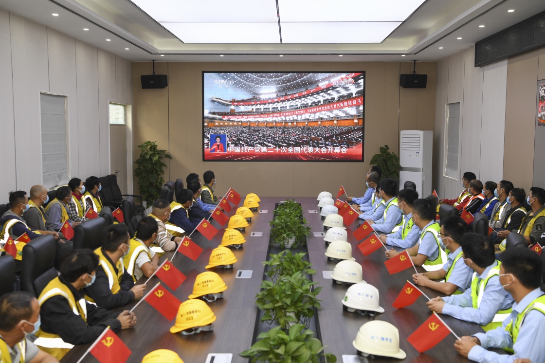 10月16日,在重慶時(shí)尚文化城項(xiàng)目,中建八局西南公司一線職工收看中國(guó)共產(chǎn)黨第二十次全國(guó)代表大會(huì)開幕會(huì)。
