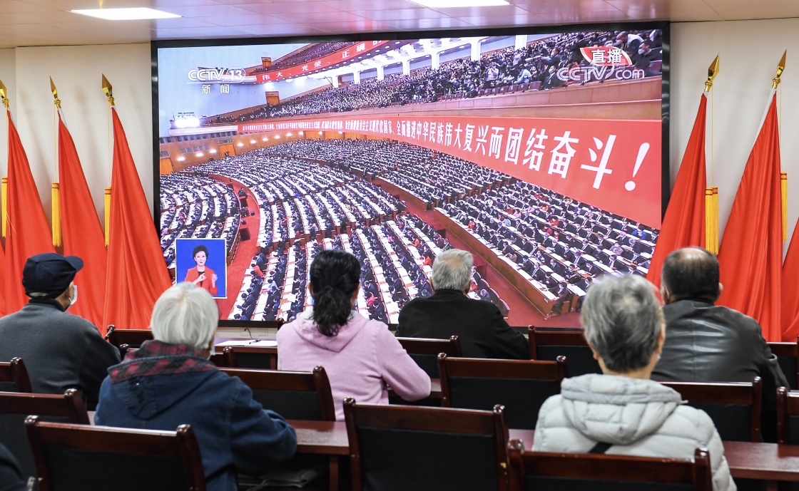 10月16日,在湖南省湘西土家族苗族自治州花垣縣雙龍鎮(zhèn)十八洞村,村民在收看中國(guó)共產(chǎn)黨第二十次全國(guó)代表大會(huì)開幕會(huì)。