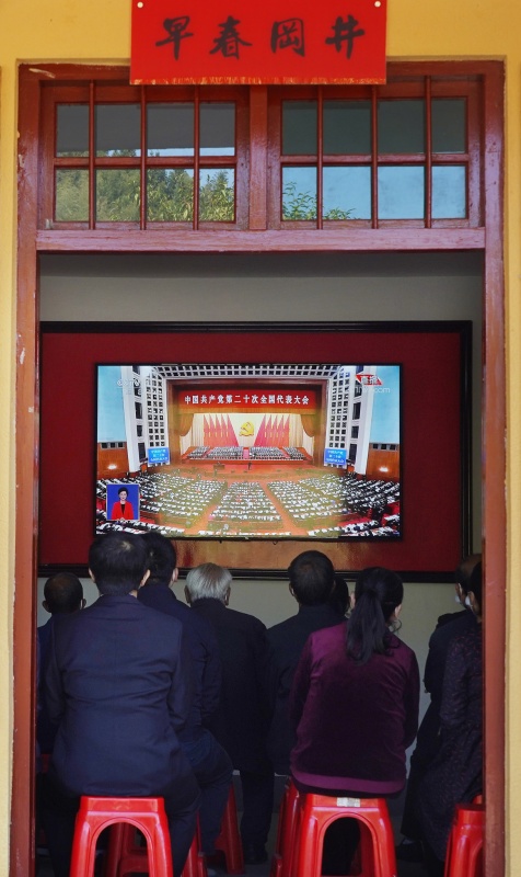 10月16日,陜西延川縣梁家河村村民收看中國(guó)共產(chǎn)黨第二十次全國(guó)代表大會(huì)開幕會(huì)。