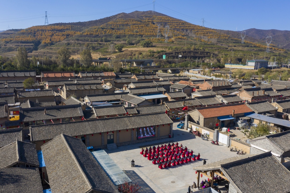 10月16日,山西省忻州市岢嵐縣宋家溝村村民在觀看中國(guó)共產(chǎn)黨第二十次全國(guó)代表大會(huì)開幕會(huì)(無人機(jī)照片)。