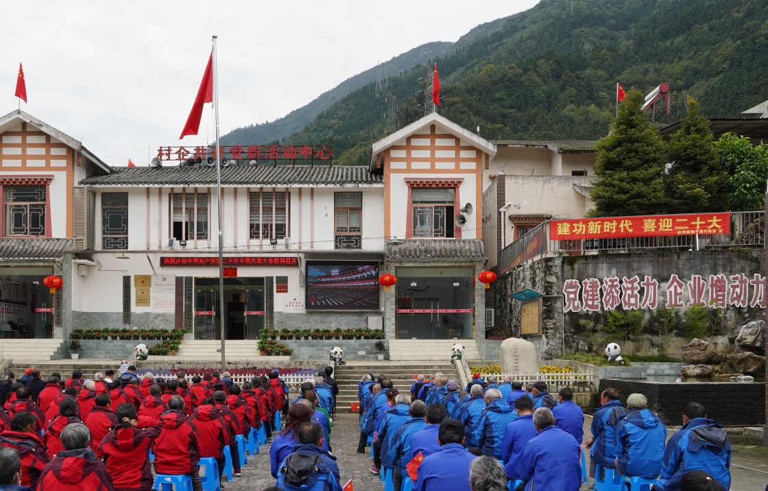 10月16日,在四川省阿壩州汶川縣映秀鎮(zhèn)漁子溪村,村民在收看中國(guó)共產(chǎn)黨第二十次全國(guó)代表大會(huì)開幕會(huì)。