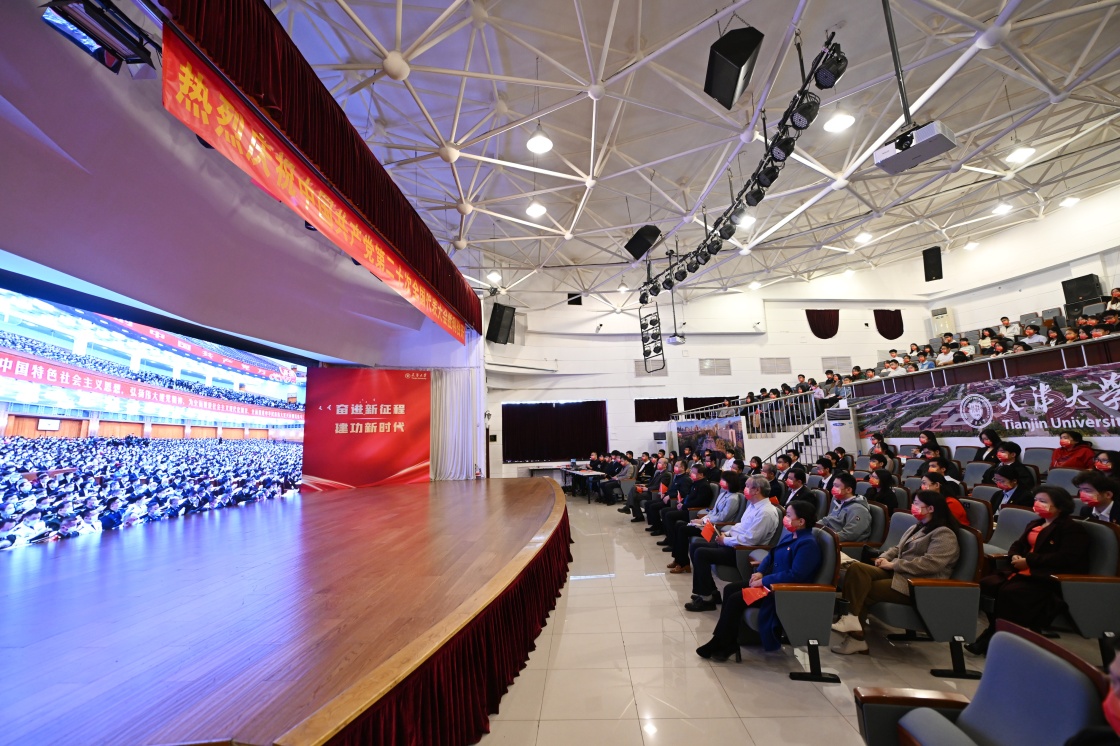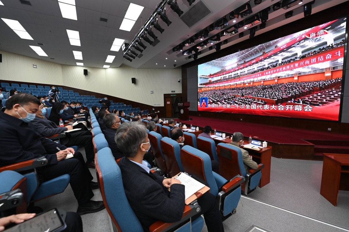 10月16日,天津大學(xué)部分師生代表在報(bào)告廳收看中國(guó)共產(chǎn)黨第二十次全國(guó)代表大會(huì)開幕會(huì)。