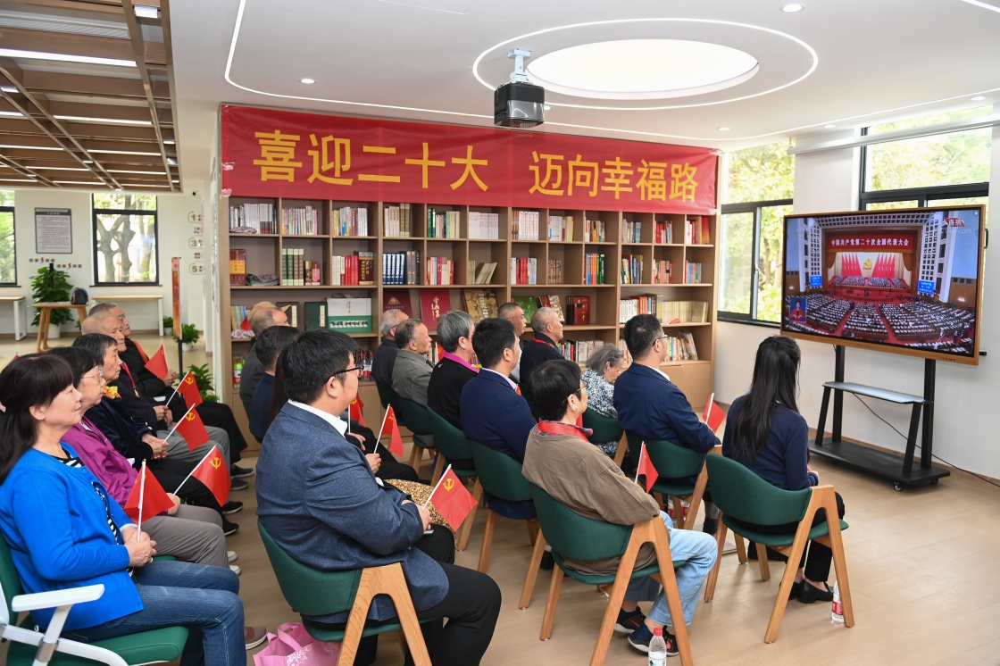 10月16日,浙江省杭州市西湖區(qū)翠苑街道翠苑一區(qū)社區(qū)的黨員觀看中國(guó)共產(chǎn)黨第二十次全國(guó)代表大會(huì)開幕會(huì)。