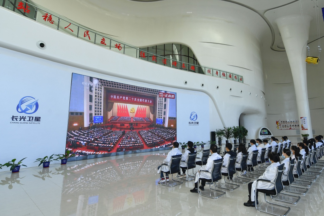 10月16日,在吉林省長(zhǎng)春市,長(zhǎng)光衛(wèi)星技術(shù)股份有限公司科研人員收看中國(guó)共產(chǎn)黨第二十次全國(guó)代表大會(huì)開幕會(huì)。