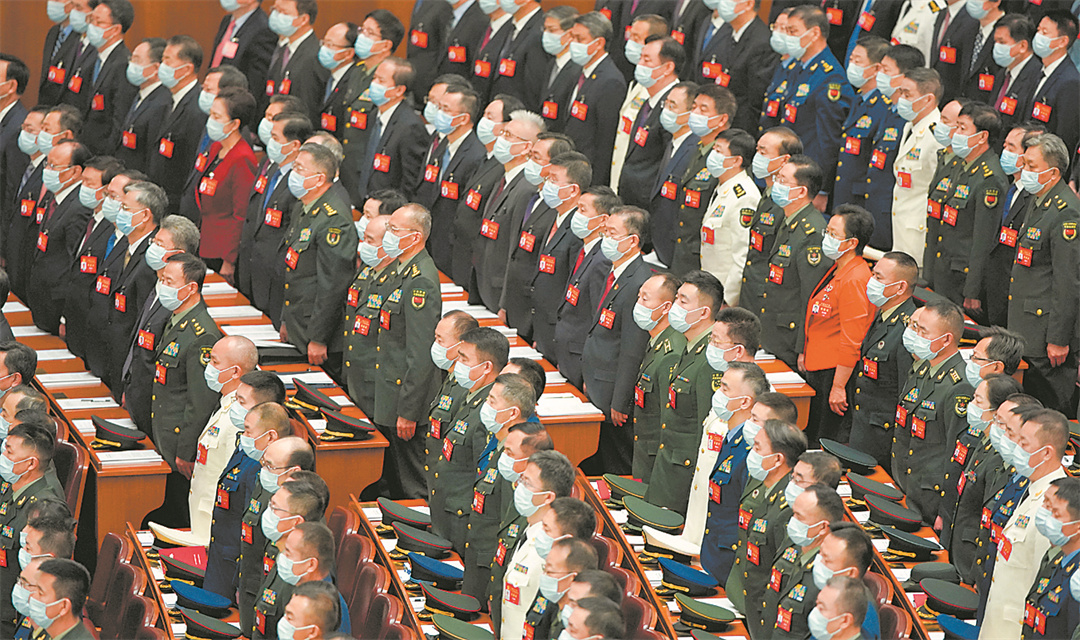 會(huì)議開(kāi)始后,代表們高唱中華人民共和國(guó)國(guó)歌。新華社記者 才 揚(yáng)攝