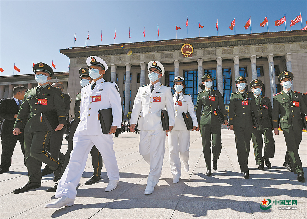 解放軍和武警部隊代表團代表走向會場。解放軍報記者 穆瑞林攝