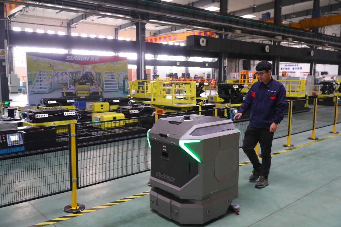 機(jī)械手臂靈活組裝零件,移動(dòng)機(jī)器人在車間內(nèi)運(yùn)行自如……沈陽新松機(jī)器人自動(dòng)化股份有限公司的車間內(nèi),上千臺(tái)正在運(yùn)轉(zhuǎn)的機(jī)器人組成了一個(gè)龐大的機(jī)械王國。