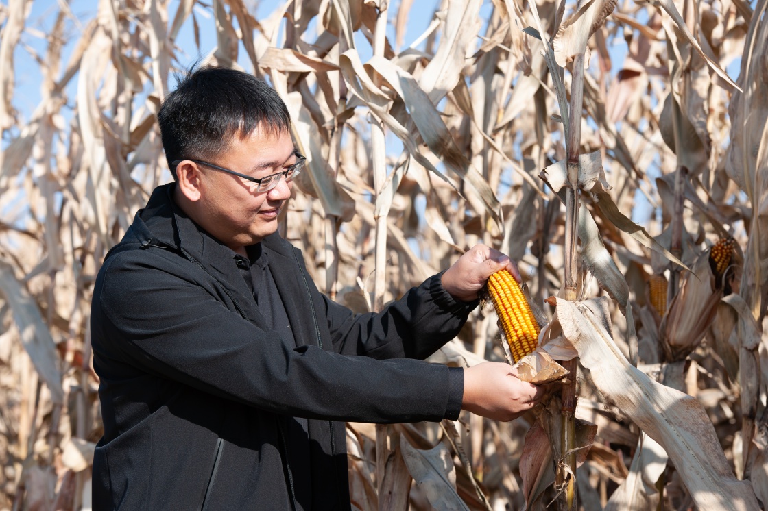 10月16日,黑龍江省寶清縣農(nóng)業(yè)農(nóng)村局副局長張強(qiáng)在農(nóng)田中查看玉米成熟情況。新華社發(fā)(鄂麗霞 攝)