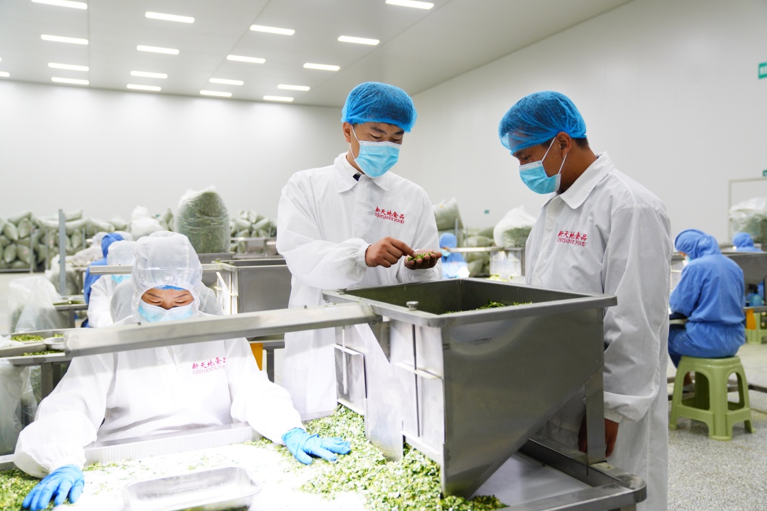 10月16日,在山東省蘭陵縣代村一家食品加工企業(yè),代村黨委成員劉聰聰(中)在檢查產(chǎn)品質(zhì)量。新華社記者 郭緒雷 攝
