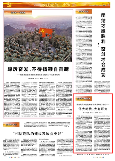 “偉大時(shí)代,大有可為!”聽(tīng)著官兵們你一言我一語(yǔ)的討論,身在代表駐地的孫金龍倍感欣慰。這兩天,他正著手整理黨的二十大報(bào)告中提到的新觀點(diǎn)、新論斷、新思想,形成通俗易懂的宣講資料?!皶?huì)議結(jié)束后,我會(huì)帶領(lǐng)連隊(duì)官兵把報(bào)告進(jìn)一步學(xué)深悟透,將大家的思想和行動(dòng)統(tǒng)一到大會(huì)精神上來(lái),為如期實(shí)現(xiàn)建軍一百年奮斗目標(biāo)貢獻(xiàn)力量?!睂O金龍說(shuō)。