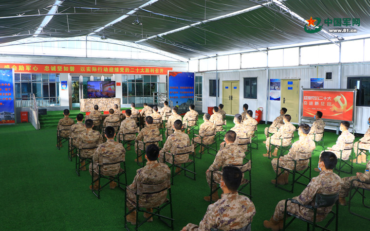 西北大漠,一間由車庫改造的簡易營房中,百余官兵整齊就坐,收看大會盛況;雪域高原,野戰(zhàn)帳篷中,三五官兵圍在一起討論,“踔厲奮發(fā)、勇毅前行”的豪情充盈心間……