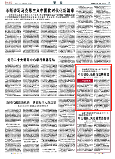 中士崔文科去年參加“國際軍事比賽-2021”“晴空”項(xiàng)目時(shí),不畏強(qiáng)手、奮勇拼搏,被評為多能賽最佳駕駛員。結(jié)合自身經(jīng)歷,他激動(dòng)地說:“報(bào)告指出,堅(jiān)持黨對人民軍隊(duì)的絕對領(lǐng)導(dǎo)。作為紅軍傳人,我們要傳承發(fā)揚(yáng)連隊(duì)優(yōu)良傳統(tǒng),聽黨話、跟黨走,苦練戰(zhàn)斗本領(lǐng)?!?/p>