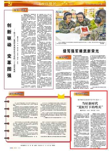 同襄盛舉,共話擔(dān)當(dāng)。楊澤楠一席話,使大家參與討論的熱情更加高漲。前兩天剛剛通過層層考核、拿到中共一大紀念館義務(wù)講解員證書的下士李昊杰說:“在黨的誕生地講解黨的歷史、傳播黨的理論,使命光榮、責(zé)任如山。我們一定要在強軍實踐中弘揚偉大建黨精神,堅持不懈學(xué)黨史鑄忠誠,在新的征程上更加堅定自覺地踐行初心使命。”聽完李昊杰的發(fā)言,屏幕那頭的楊澤楠沖他豎起了大拇指。