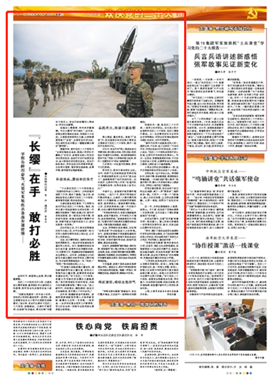 “習(xí)主席在黨的二十大報(bào)告提出‘加速科技向戰(zhàn)斗力轉(zhuǎn)化’,為科技強(qiáng)軍指明了方向、提供了遵循?!边B日來(lái),該旅組織官兵認(rèn)真學(xué)習(xí)黨的二十大報(bào)告,感悟強(qiáng)軍成就,煥發(fā)奮進(jìn)動(dòng)力。