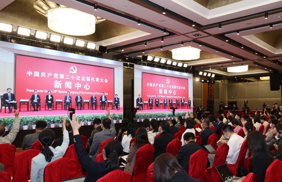 10月19日,中國共產(chǎn)黨第二十次全國代表大會(huì)新聞中心舉行集體采訪。重慶、四川、貴州、云南、西藏、陜西、甘肅代表團(tuán)新聞發(fā)言人出席,介紹代表團(tuán)學(xué)習(xí)討論二十大報(bào)告情況,并回答記者提問。