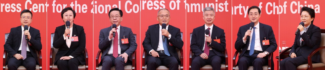 10月19日,中國共產(chǎn)黨第二十次全國代表大會(huì)新聞中心舉行集體采訪。重慶、四川、貴州、云南、西藏、陜西、甘肅代表團(tuán)新聞發(fā)言人出席,介紹代表團(tuán)學(xué)習(xí)討論二十大報(bào)告情況,并回答記者提問(拼版照片)。