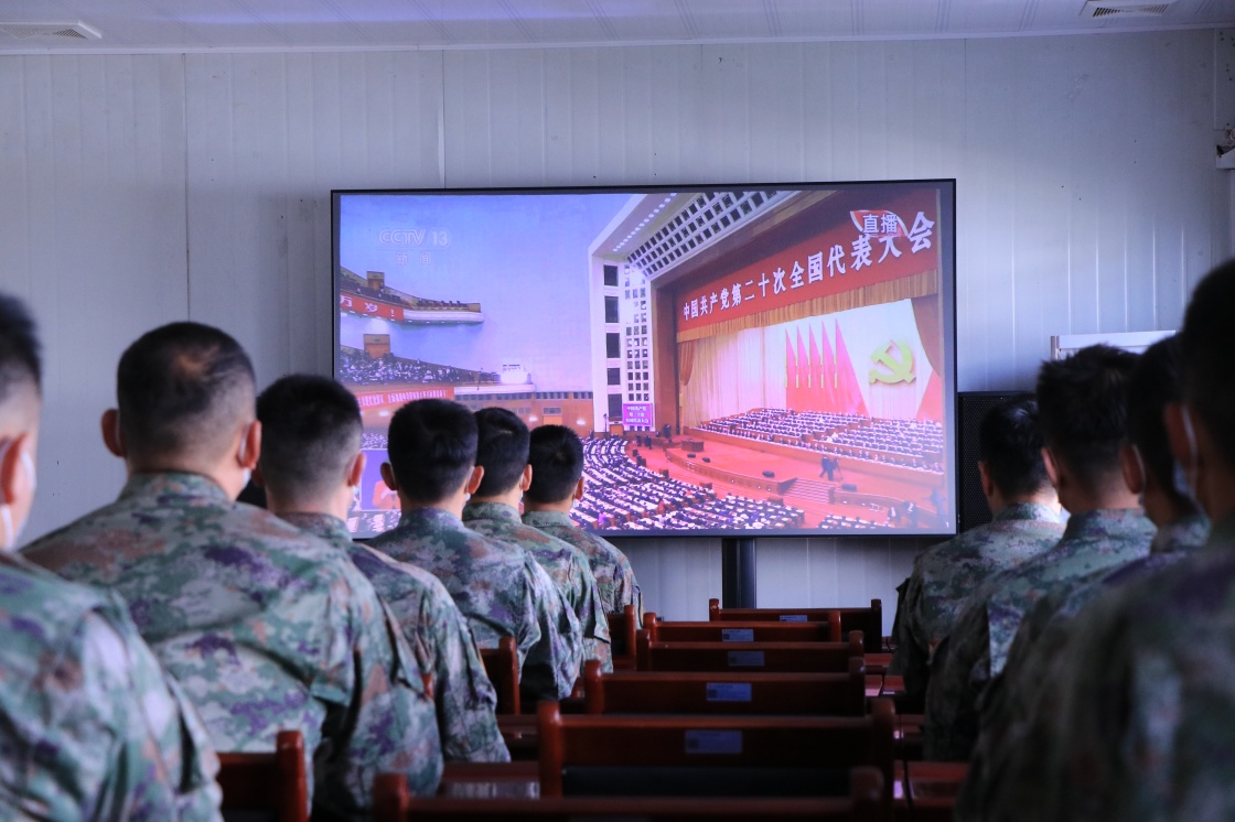 10月16日,中部戰(zhàn)區(qū)陸軍第82集團(tuán)軍某旅官兵收看中國共產(chǎn)黨第二十次全國代表大會(huì)開幕會(huì)。新華社發(fā)(徐超 攝)