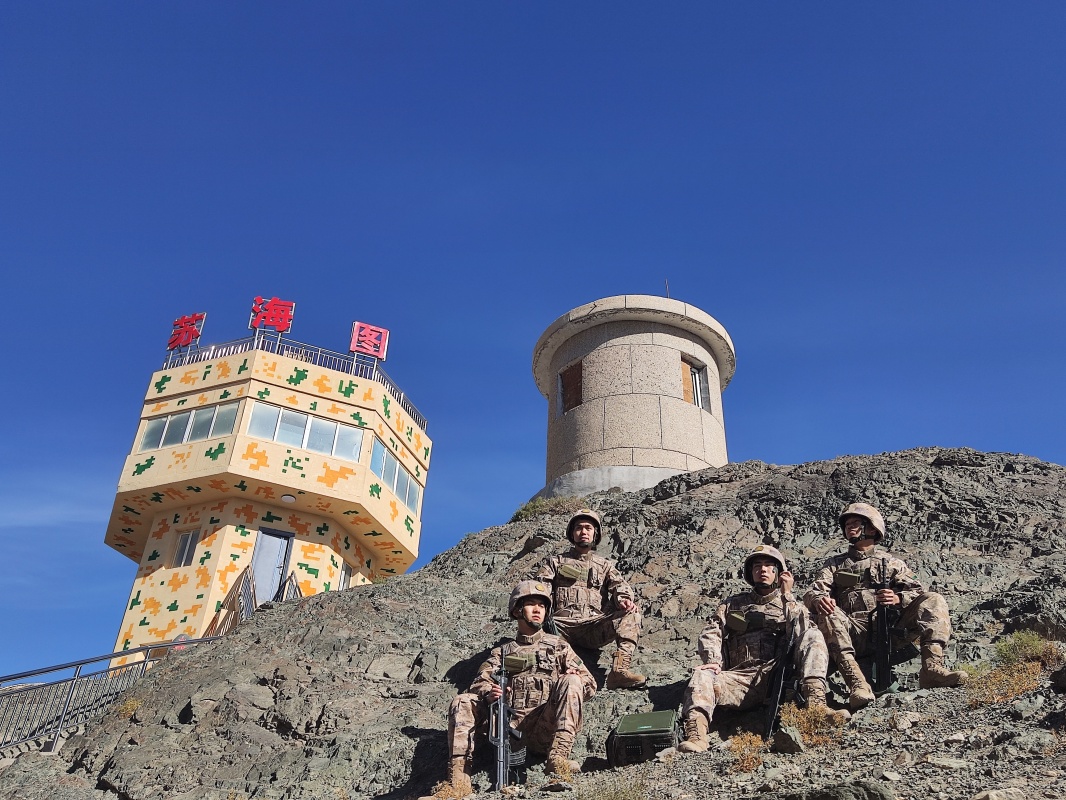 10月16日,新疆軍區(qū)蘇海圖哨所官兵利用廣播收聽中國共產(chǎn)黨第二十次全國代表大會(huì)開幕會(huì)。新華社發(fā)(何凱航 攝)