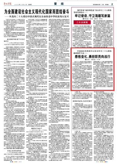 “學習黨的二十大報告,極大激發(fā)了官兵的工作熱情?!痹撜{(diào)度中心政治工作部領導告訴記者,連日來,他們組織官兵結合軍事運輸投送領域實際學習二十大報告,大家錨定目標干事創(chuàng)業(yè)的熱情更加高漲。