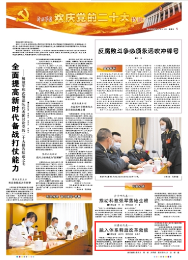 “全面加強(qiáng)軍事治理,鞏固拓展國防和軍隊改革成果,完善軍事力量結(jié)構(gòu)編成……”認(rèn)真學(xué)習(xí)黨的二十大報告,劉魯運說,我們要主動重塑自我,加快磨合融合,進(jìn)一步釋放新體制新編成的改革效能。