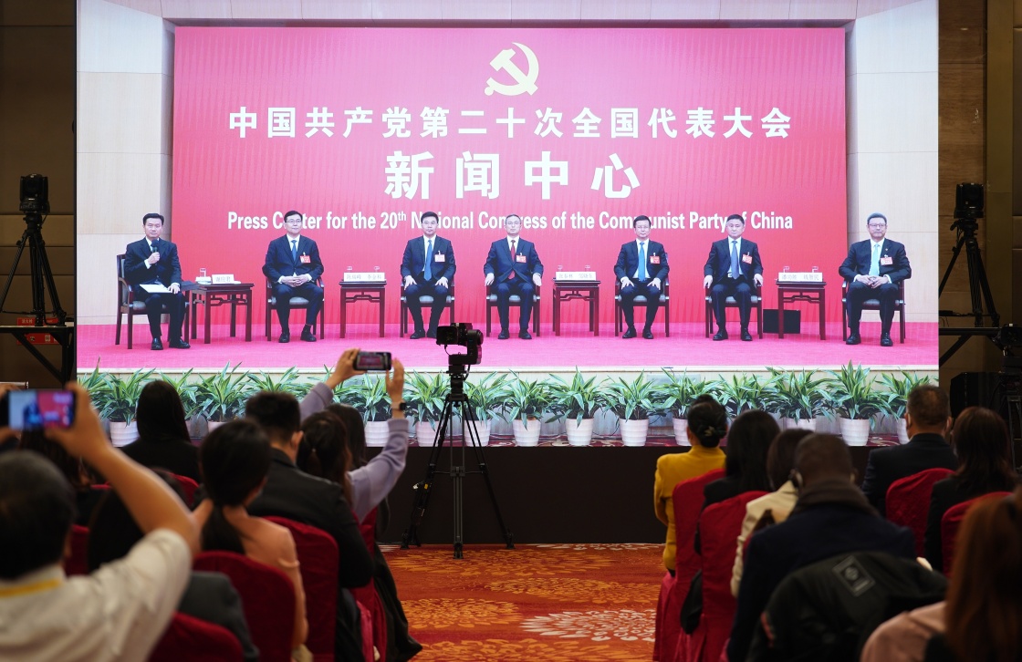 10月20日,中國共產(chǎn)黨第二十次全國代表大會新聞中心舉行集體采訪。青海、寧夏、新疆、中央和國家機(jī)關(guān)、中央金融系統(tǒng)、中央企業(yè)系統(tǒng)(在京)代表團(tuán)新聞發(fā)言人出席,介紹代表團(tuán)學(xué)習(xí)討論二十大報告情況,并回答記者提問。