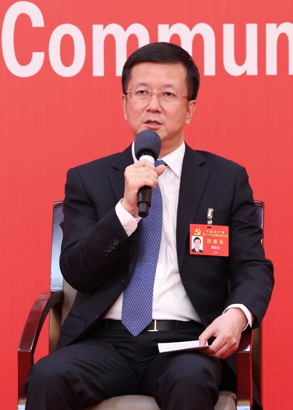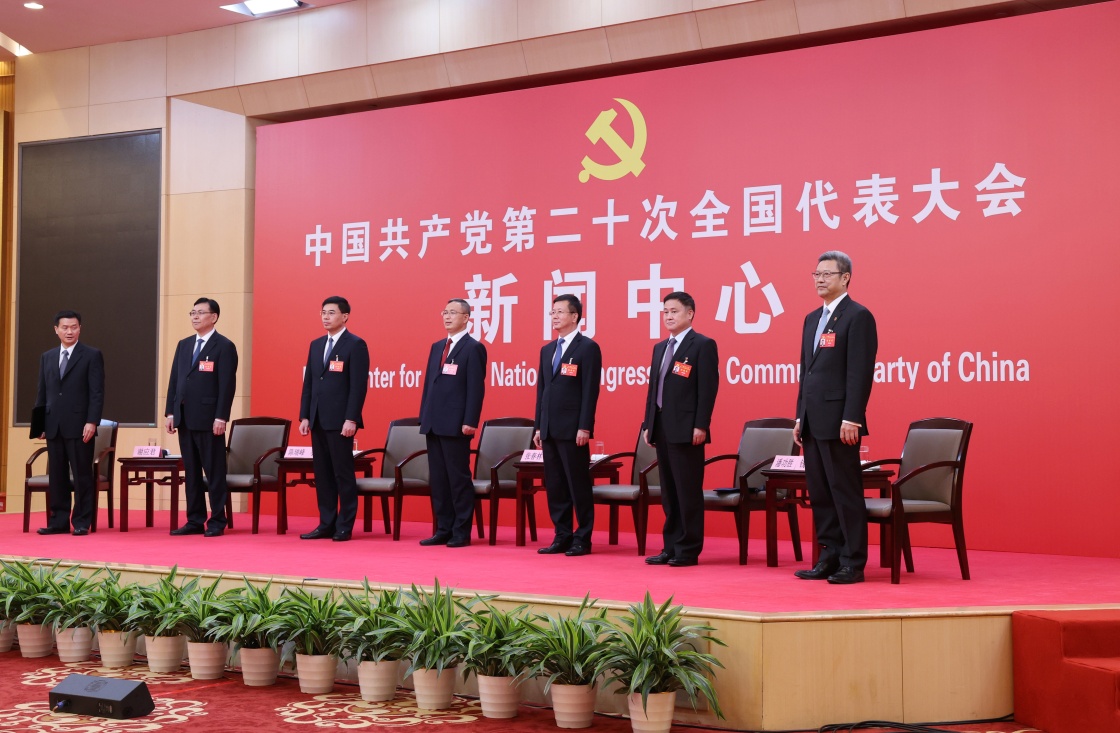 10月20日,中國共產(chǎn)黨第二十次全國代表大會新聞中心舉行集體采訪。青海、寧夏、新疆、中央和國家機(jī)關(guān)、中央金融系統(tǒng)、中央企業(yè)系統(tǒng)(在京)代表團(tuán)新聞發(fā)言人出席,介紹代表團(tuán)學(xué)習(xí)討論二十大報告情況,并回答記者提問。新華社記者 陳建力 攝