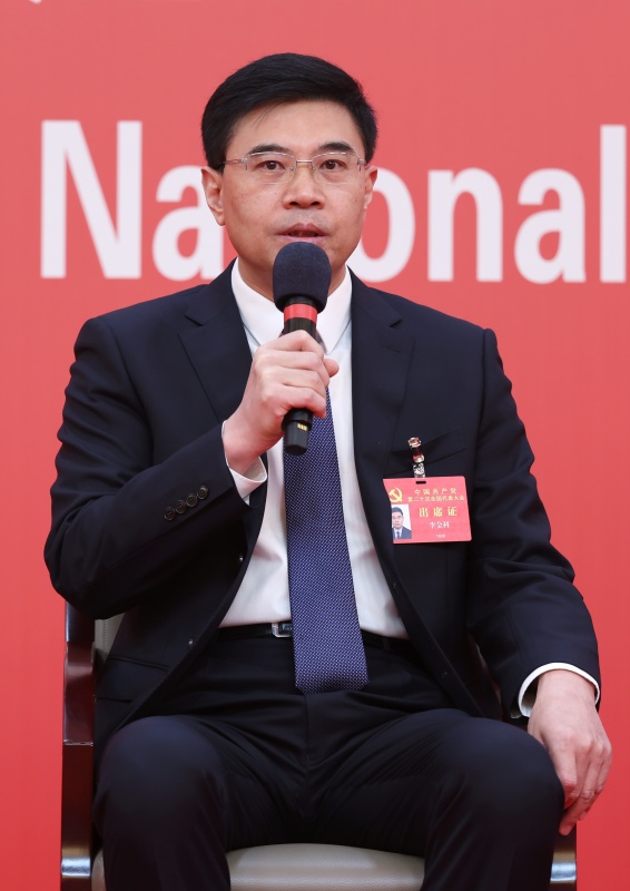 這是國家電力投資集團(tuán)有限公司董事長、黨組書記錢智民在回答記者提問。新華社記者 陳建力 攝