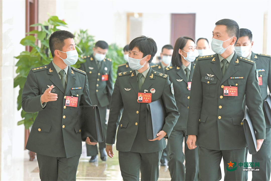解放軍和武警部隊(duì)代表交流學(xué)習(xí)黨的二十大報(bào)告心得。解放軍報(bào)記者 范顯海攝