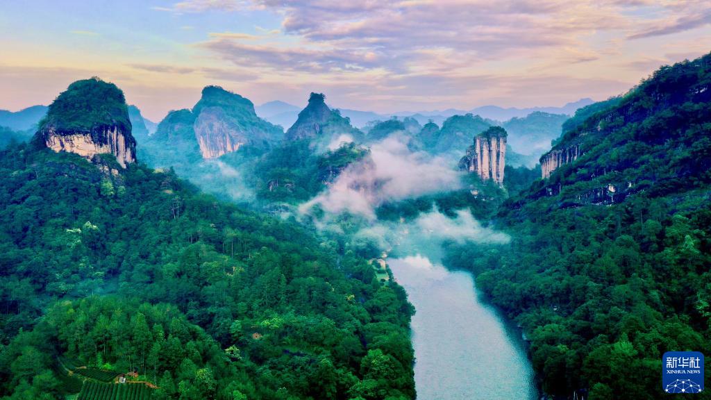 這是福建武夷山九曲溪兩岸的丹霞景觀(2022年6月7日攝,無人機照片)。新華社記者 姜克紅 攝