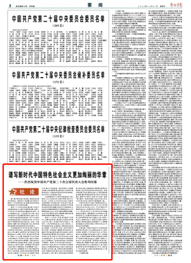凝心聚力擘畫復興新藍圖,團結(jié)奮進創(chuàng)造歷史新偉業(yè)。舉國關(guān)注、舉世矚目的中國共產(chǎn)黨第二十次全國代表大會,圓滿完成各項議程和崇高使命,在北京勝利閉幕。