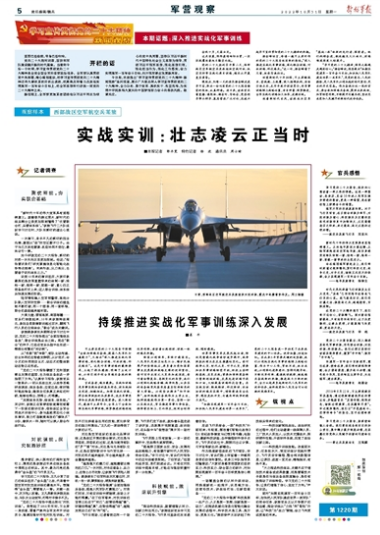“推動(dòng)科技練兵,就要增強(qiáng)認(rèn)知力、創(chuàng)新力和運(yùn)用力?!痹撀媒M織官兵學(xué)習(xí)黨的二十大報(bào)告,飛行員劉直函的發(fā)言透著自信。