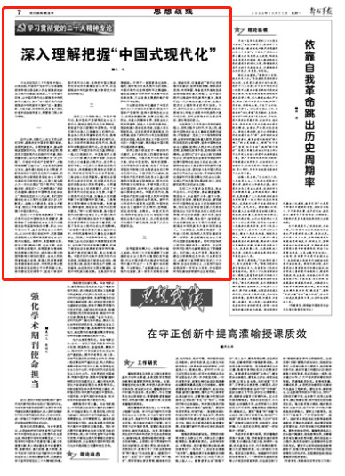 習(xí)主席在黨的二十大報(bào)告中指出,從現(xiàn)在起,中國共產(chǎn)黨的中心任務(wù)就是團(tuán)結(jié)帶領(lǐng)全國各族人民全面建成社會(huì)主義現(xiàn)代化強(qiáng)國、實(shí)現(xiàn)第二個(gè)百年奮斗目標(biāo),以中國式現(xiàn)代化全面推進(jìn)中華民族偉大復(fù)興。其中“以中國式現(xiàn)代化全面推進(jìn)中華民族偉大復(fù)興”這一重要論斷,內(nèi)涵豐富、思想深刻,具有重大理論價(jià)值和實(shí)踐指導(dǎo)意義,需要我們深入學(xué)習(xí)領(lǐng)悟。