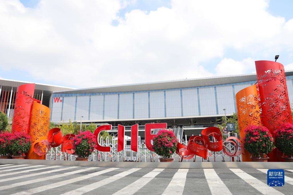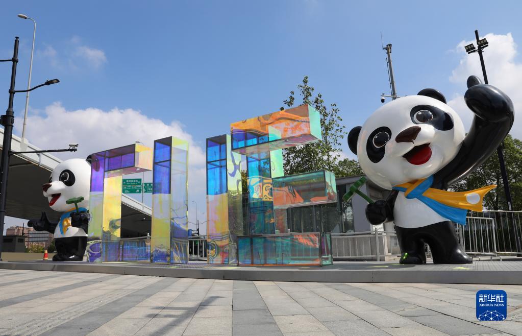 這是國家會展中心(上海)北入口外的進(jìn)博主題裝飾(10月15日攝)。