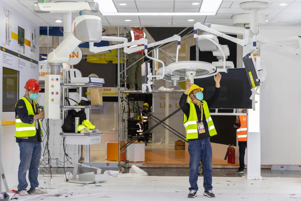 10月31日,國(guó)家會(huì)展中心(上海)內(nèi)布展工作正有序進(jìn)行。新華社記者 王翔 攝