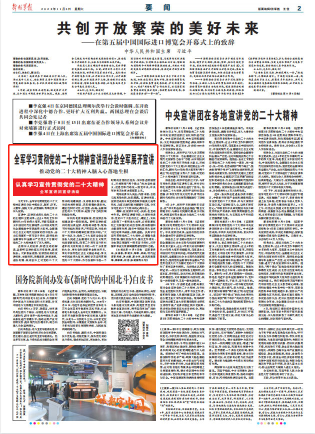 今天下午,全軍學(xué)習(xí)貫徹黨的二十大精神宣講團(tuán)分赴中部戰(zhàn)區(qū)、陸軍、空軍、火箭軍、國(guó)防大學(xué)、武警部隊(duì)等單位展開深入宣講。