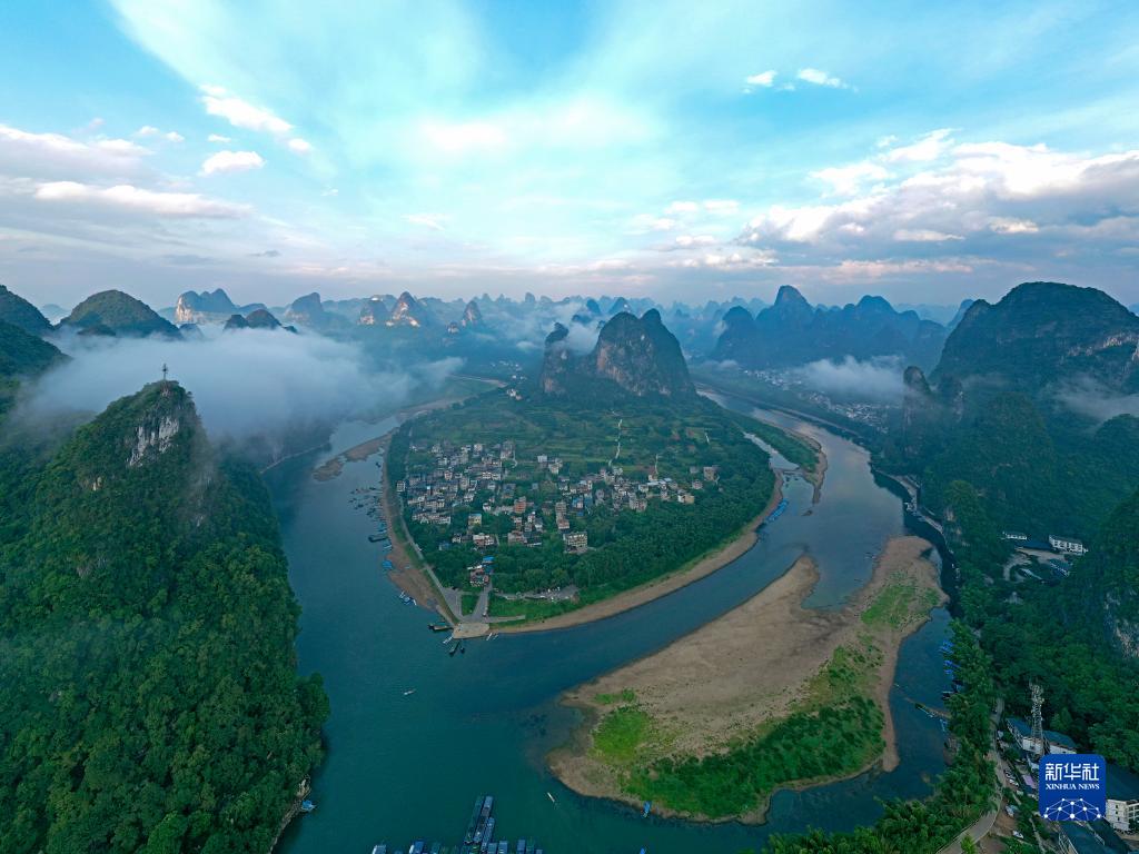這是在廣西陽朔縣興坪鎮(zhèn)拍攝的漓江風光(2022年8月25日攝,無人機照片)。新華社記者 周華 攝