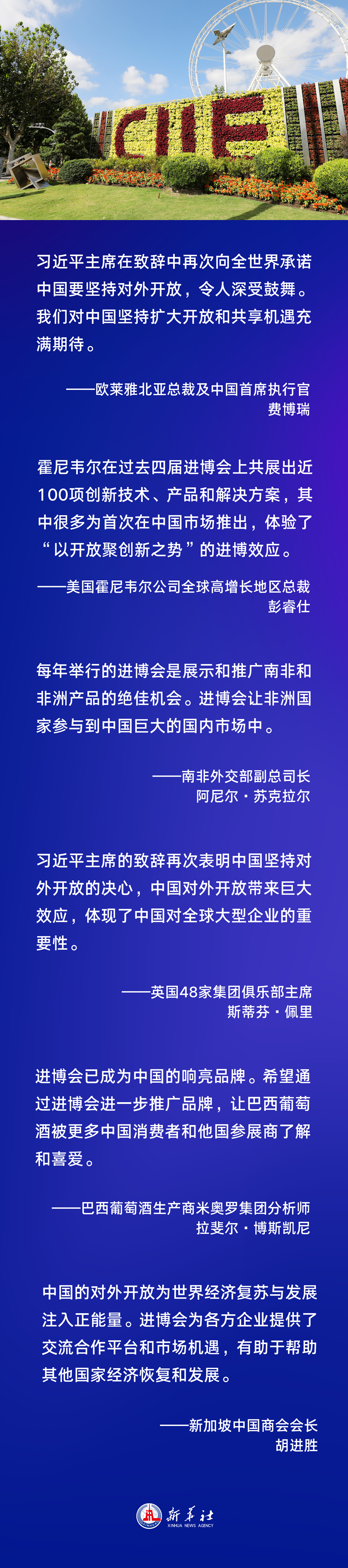 受訪(fǎng)海外人士表示,習(xí)近平主席的致辭展現(xiàn)了中國(guó)推動(dòng)高水平開(kāi)放、堅(jiān)定不移同世界共享發(fā)展機(jī)遇的決心和擔(dān)當(dāng),為共同克服全球經(jīng)濟(jì)發(fā)展面臨的困難和挑戰(zhàn)提振信心,為共建開(kāi)放型世界經(jīng)濟(jì)、推動(dòng)全球經(jīng)濟(jì)復(fù)蘇和增長(zhǎng)、共創(chuàng)美好未來(lái)注入強(qiáng)勁動(dòng)力。