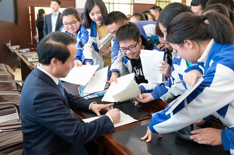 中國工程院院士詹啟敏為學(xué)生們簽名。汪和云攝