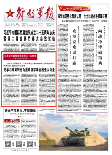 7日,全軍學習貫徹黨的二十大精神宣講團分赴海軍、東部戰(zhàn)區(qū)陸軍、西藏軍區(qū)、北京衛(wèi)戍區(qū)開展宣講。