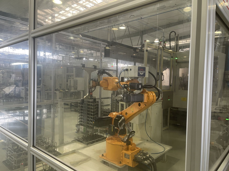 雙環(huán)傳動工廠內(nèi),機器人代替人工正在進行生產(chǎn)操作。人民網(wǎng) 王蕭蕭攝