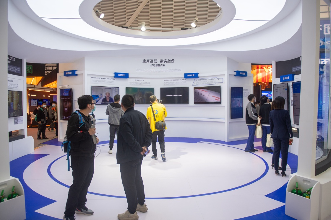 這是11月8日拍攝的中國移動展臺展示的交互舞蹈游戲。