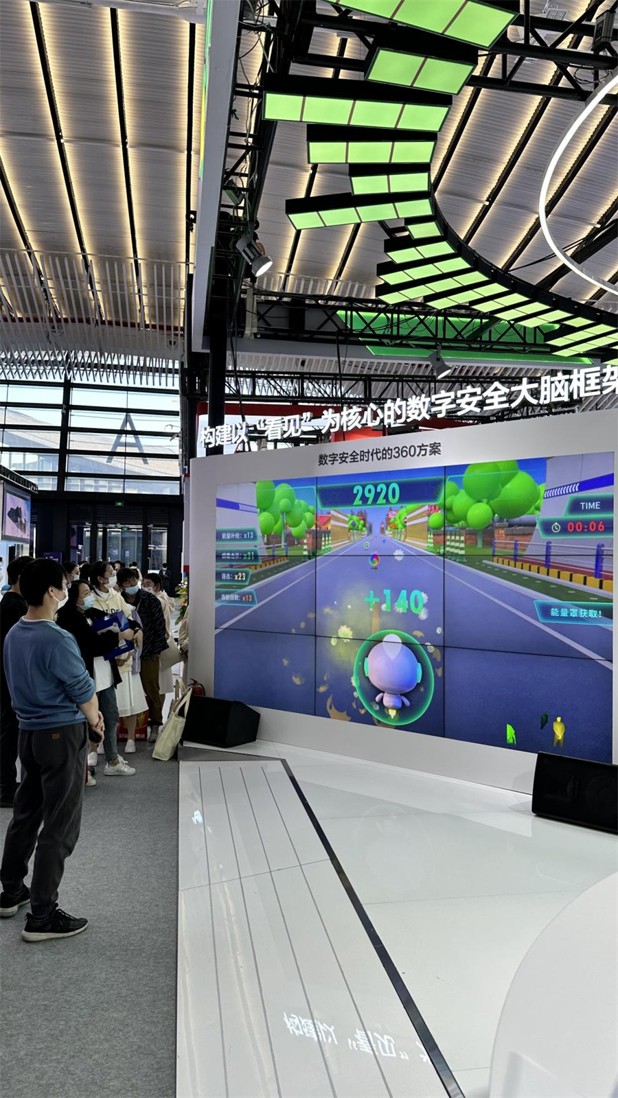 360公司用游戲互動(dòng)吸引觀眾參觀公司展覽。新華網(wǎng)張靈 攝