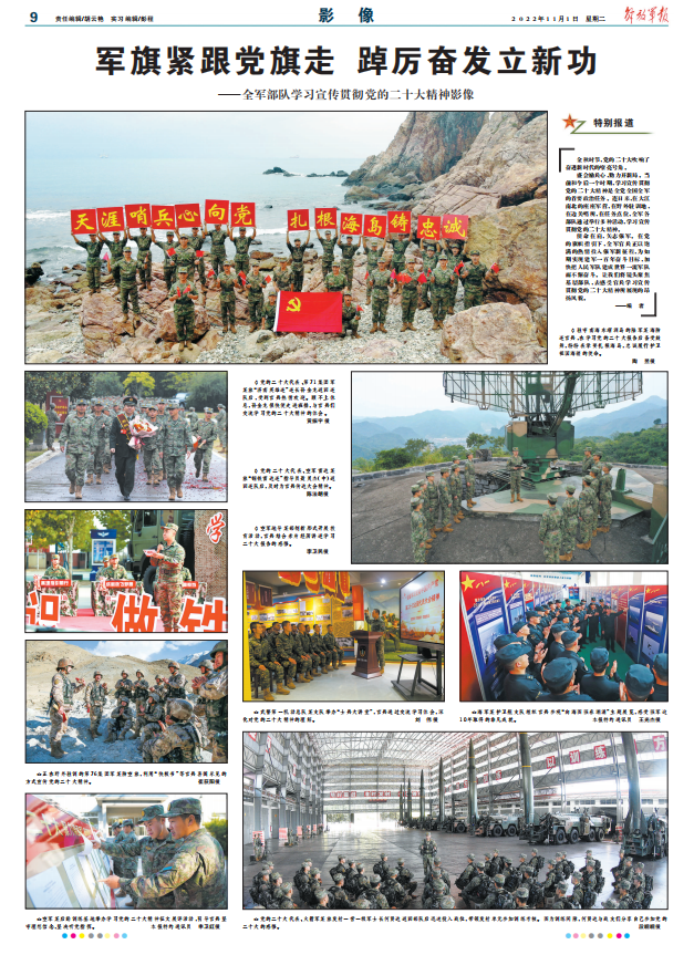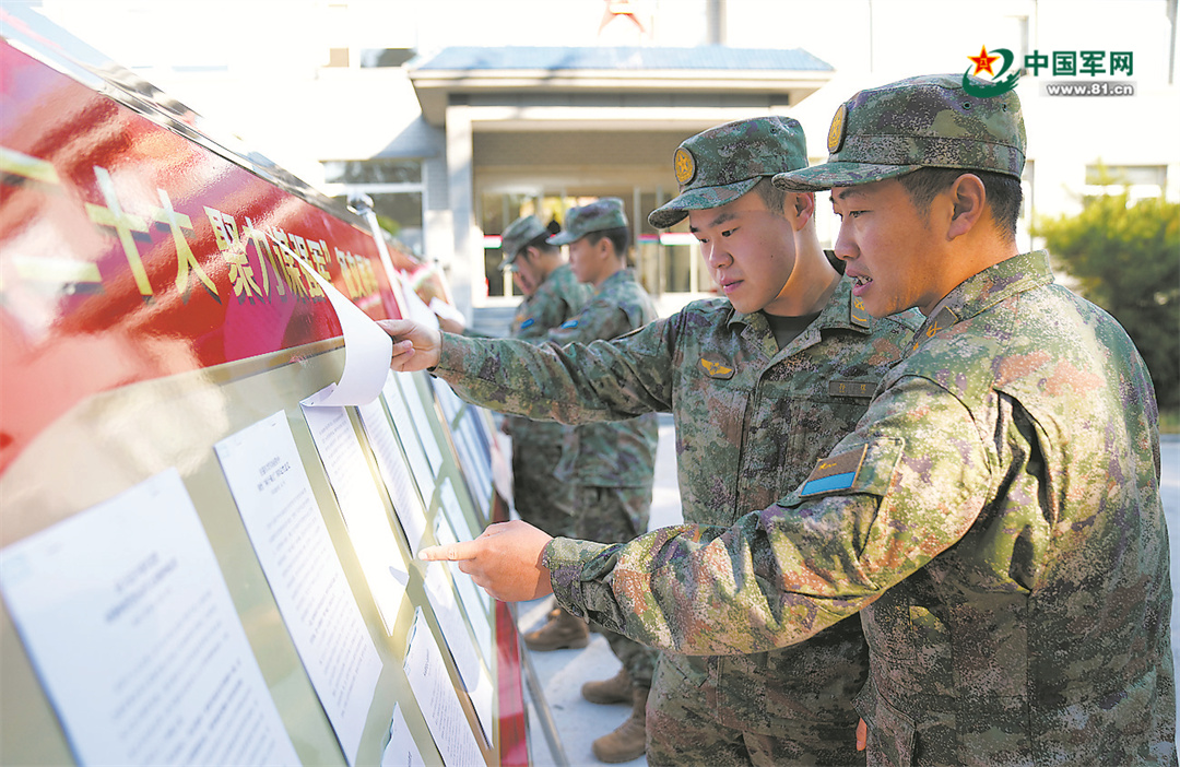 盛會(huì)勵(lì)兵心,勠力開(kāi)新局。當(dāng)前和今后一個(gè)時(shí)期,學(xué)習(xí)宣傳貫徹黨的二十大精神是全黨全國(guó)全軍的首要政治任務(wù)。連日來(lái),在大江南北的座座軍營(yíng),在野外駐訓(xùn)地,在邊關(guān)哨所,在任務(wù)點(diǎn)位,全軍各部隊(duì)通過(guò)舉行多種活動(dòng),學(xué)習(xí)宣傳貫徹黨的二十大精神。