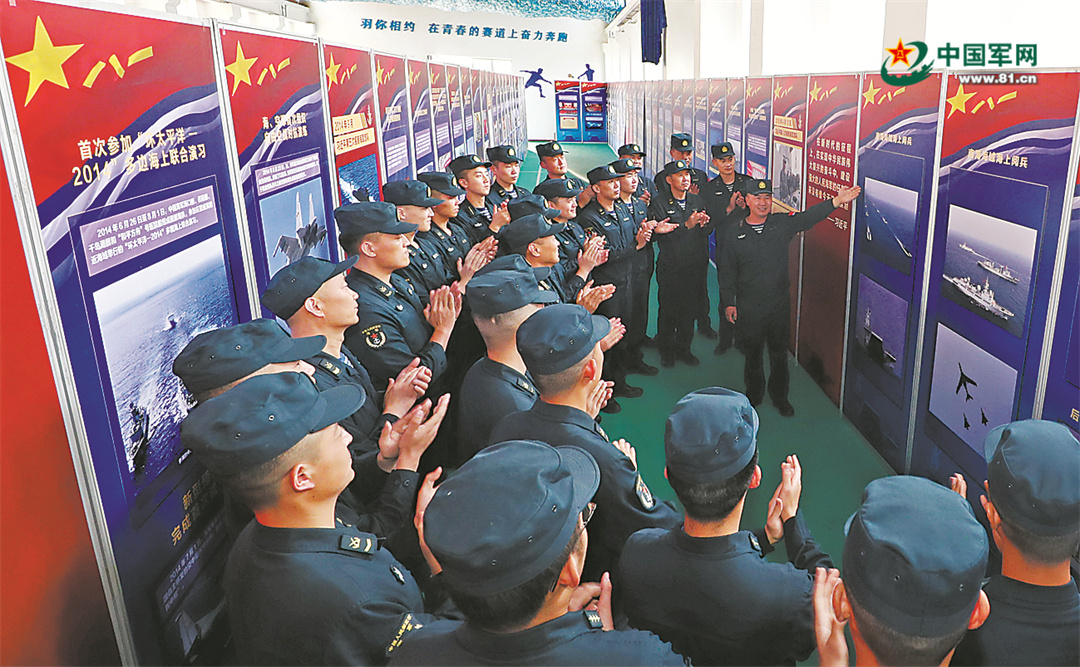 海軍某護(hù)衛(wèi)艦支隊(duì)組織官兵參觀“向海圖強(qiáng)春潮涌”主題展覽,感受強(qiáng)軍這10年取得的非凡成就。解放軍報(bào)特約通訊員 王光杰攝