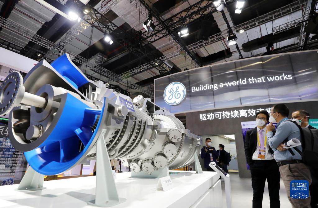 這是2022年11月6日在第五屆進(jìn)博會(huì)上拍攝的美國(guó)通用電氣公司展臺(tái)。新華社記者 方喆 攝
