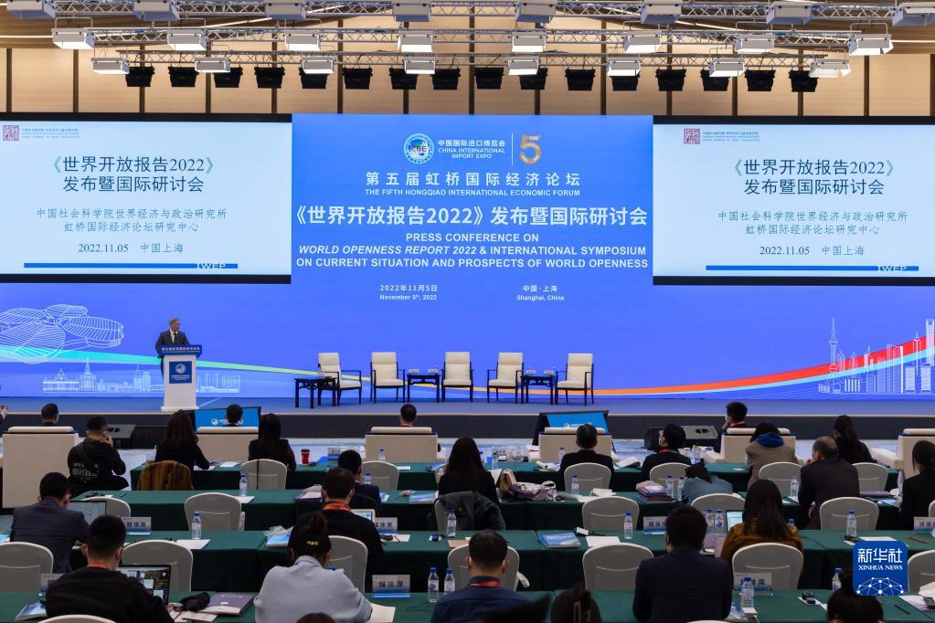 2022年11月5日,第五屆虹橋國(guó)際經(jīng)濟(jì)論壇《世界開(kāi)放報(bào)告2022》發(fā)布暨國(guó)際研討會(huì)在上海舉行。新華社記者 王翔 攝